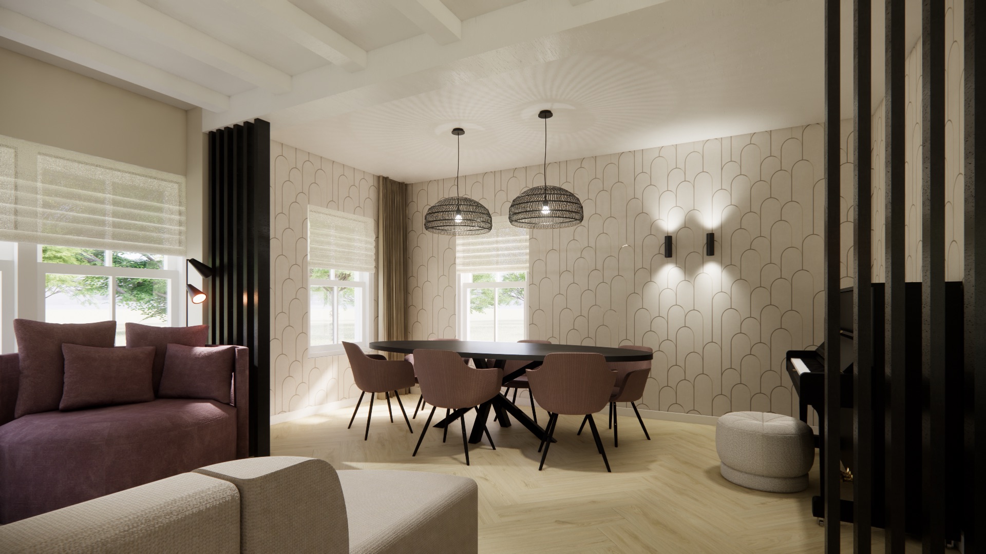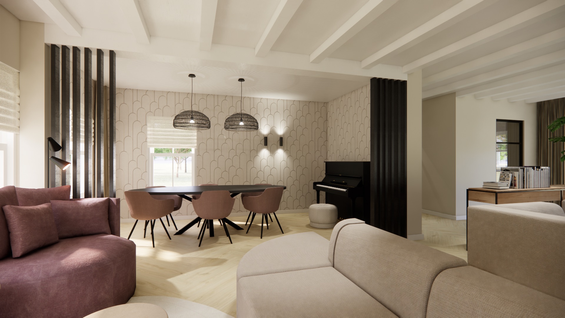 Een gezin met drie kinderen gaat binnenkort verhuizen naar een prachtige vrijstaande woning in Breda. Voor de inrichting van de gehele begane grond vroegen ze mijn hulp om hun nieuwe huis functioneel en stijlvol in te richten. Door de vele hoeken en ramen in de woning was het een uitdaging om een efficiënte indeling te creëren, maar dat maakte het project juist interessant.